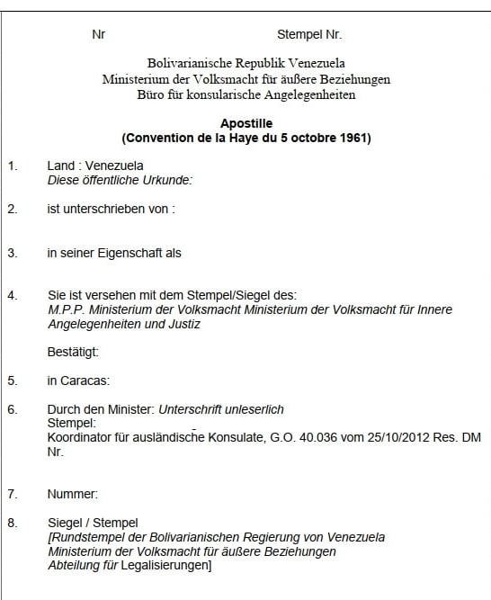 Ejemplo de traducción jurada español-alemán de una Apostilla de La Haya